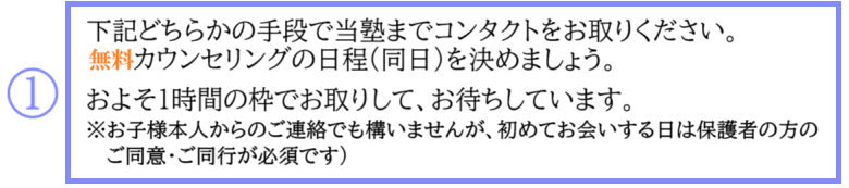 ↑『入塾するかわからないのにLINEはちょっと嫌だな…』という場合は、メールフォームよりご連絡下さい。メールアドレスの入力は必須となります。